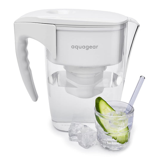 Aquagear 1 Year of Water Bundle – Water Filter Pitcher and Extra Replacement Filter – Lead, Chlorine, PFOA/PFOS, Microplastics Filter, 10 Cup, 120 Gallon Filter Life