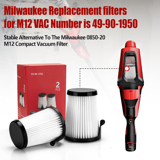 49-90-1950 Vacuum HEPA Filter Replacement for Milwaukee, for fine dust suction, also for Milwaukee M12 0850-20 Cordless Dry Compact Vacuum -(2 PACK)